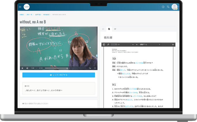 技能実習生の日本語レベルがバラバラで教育しなければいけないと思っていました。いくつか教材がある中で、デモ画面を見せていただくことで、教材等のイメージもわき、導入を決めました。導入後は、クラウド上でリアルタイムに学習状況が確認できるので、指導しやすくありがたいです。N5からN1まで教材があるので、頑張っていただきます。”!